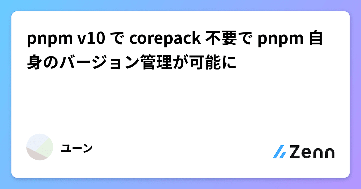 pnpm v10 で corepack 不要で pnpm 自身のバージョン管理が可能に